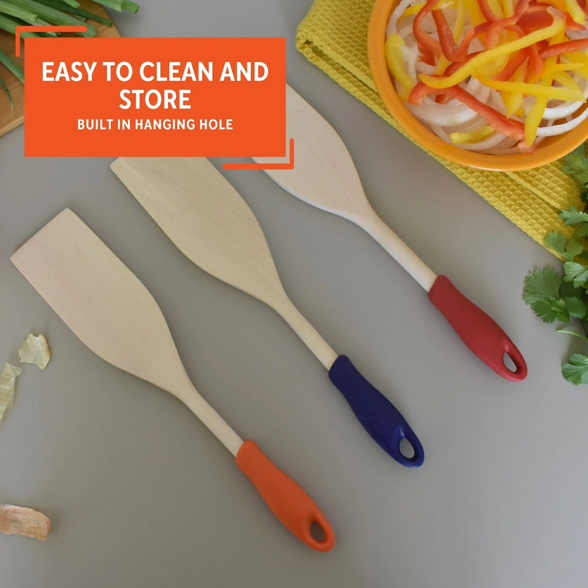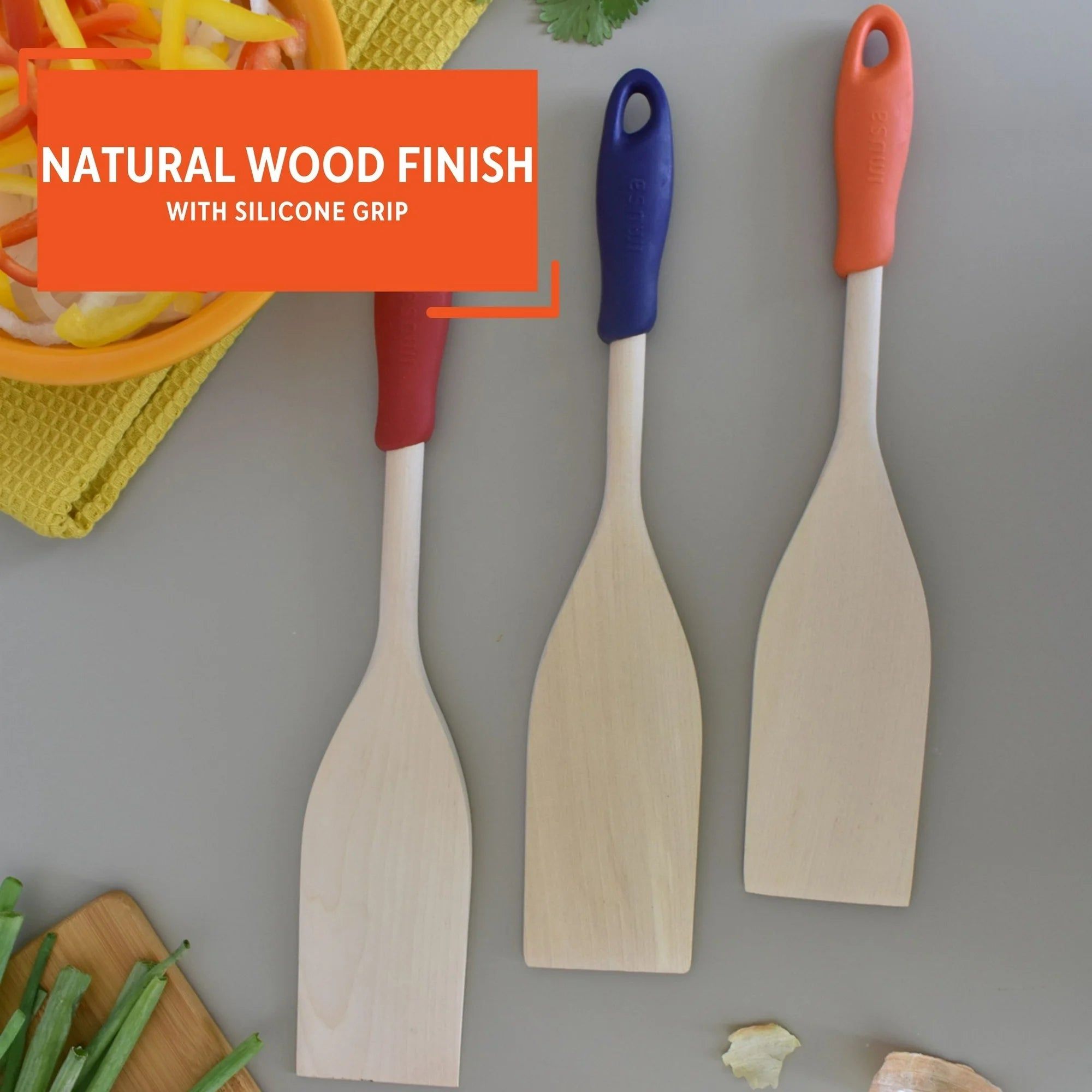 Imusa Wood Cooking Paddle with Silicone Handle, Yellow - Orange | WTWL433XA
