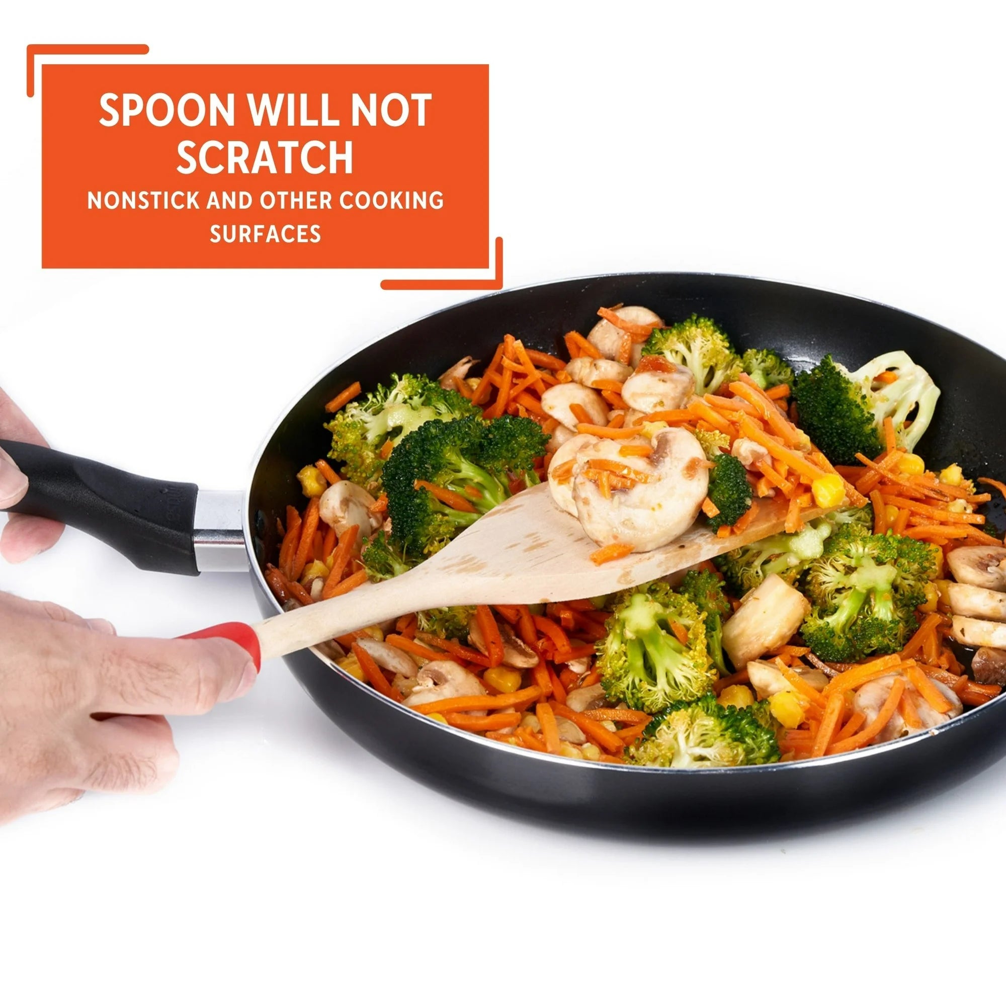 • Safe for Nonstick, Enamel, & Ceramic Cookware