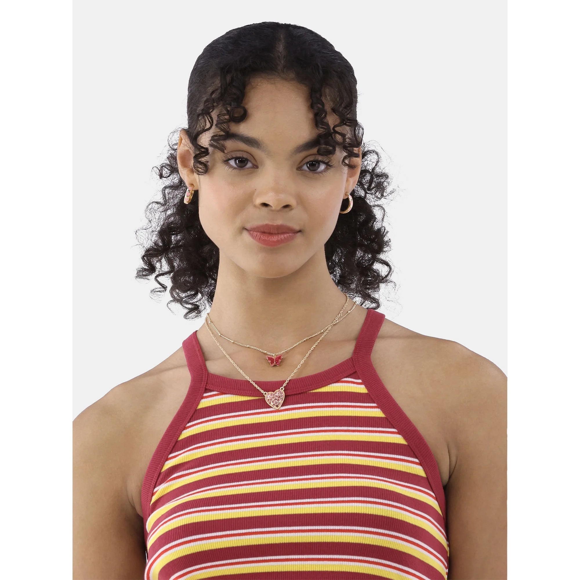 No Boundaries Rhinestone Butterfly and Heart Necklace Set, 3-Pack, Women's | WTWL309XA