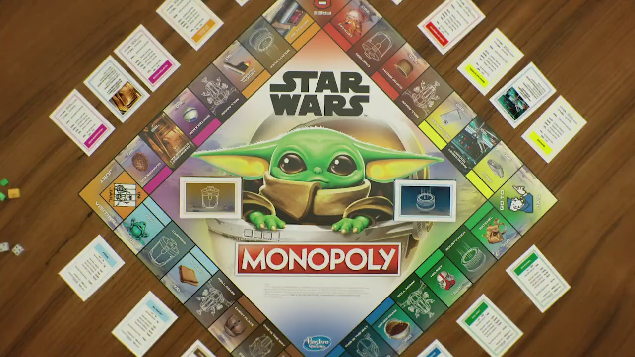 Imagine traveling around the galaxy with The Child, or affectionately known as "Baby Yoda" by fans. This Monopoly: Star Wars The Child edition board game features themes and artwork inspired by The Mandalorian live-action TV series on Disney Plus. Move around the gameboard as The Child, buy and sell Hideouts and Common Houses, and follow the actions on the Camtono cards and Bounty Puck cards. The last player remaining after everyone else has gone bankrupt wins the game!Star Wars products are produced by Hasbro under license from Lucasfilm Ltd.The Hasbro, Hasbro Gaming, Parker Brothers, and Monopoly names and logos, the distinctive design of the gameboard, the four corner squares, the Mr. Monopoly name and character, as well as each of the distinctive elements of the board and playing pieces are trademarks of Hasbro for its property trading game and game equipment.INSPIRED BY THE TV SERIES: This Star Wars edition of the Monopoly board game is inspired by the The Mandalorian live-action TV series on Disney PlusTHE CHILD TOKENS: Play as The Child (or affectionately known as "Baby Yoda" by fans) in different poses such as eating a frog, using the force, drinking a cup of broth, and sitting in the HoverpramHIDEOUTS AND HIDEAWAYS: Players travel around the board buying and trading objects from The Child's adventures. Buy Hideouts and pay to upgrade to Common HousesTHEMED GAMEBOARD: The gameboard features places and objects The Mandalorian fans will recognize such as a Cup of Broth, a Frog, Tracking FOB, Razor Crest Cockpit, and Razor Crest Storage BayFOR THE CHILD FANS: This board game for kids ages 8 and up makes a great gift for Star Wars The Mandalorian fans, and would make a nice addition to a Star Wars fan's toy collection•